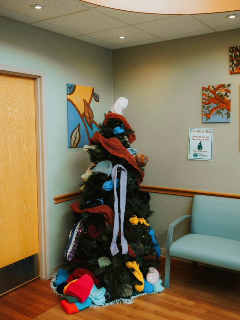 Our Mitten Tree is now standing proudly in the Emergency Department lobby, ready to help our community stay warm this
